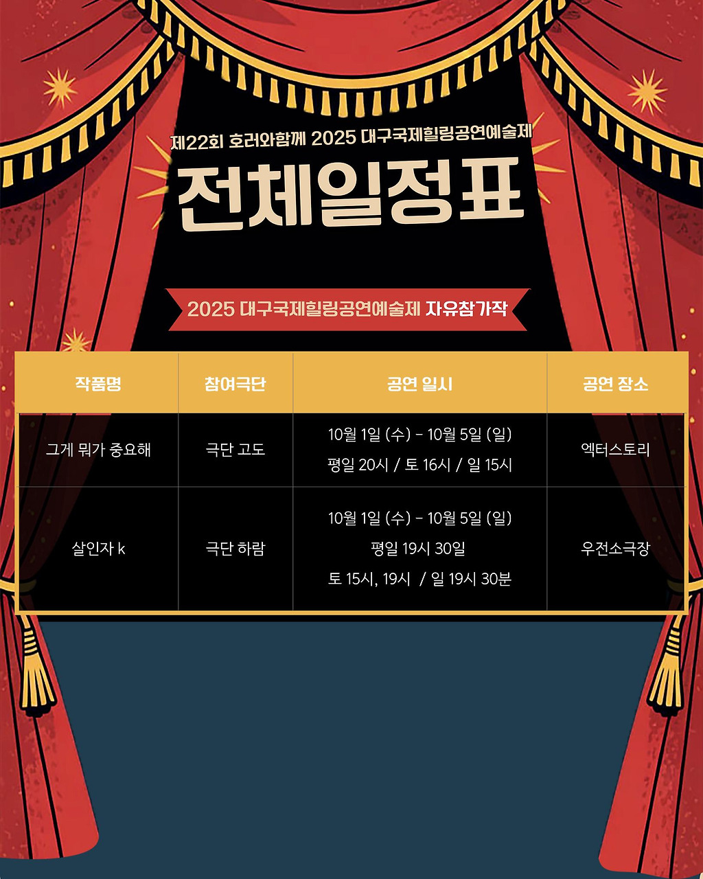#대구연극 #대구뮤지컬 #대구공연 #대구문화 #대구공연정보 #대명공연거리 #대구국제힐링공연예술제 #대구문화예술회관 #대구일반인극단 #대구일반인연극 #해아람 #포시즌스카이