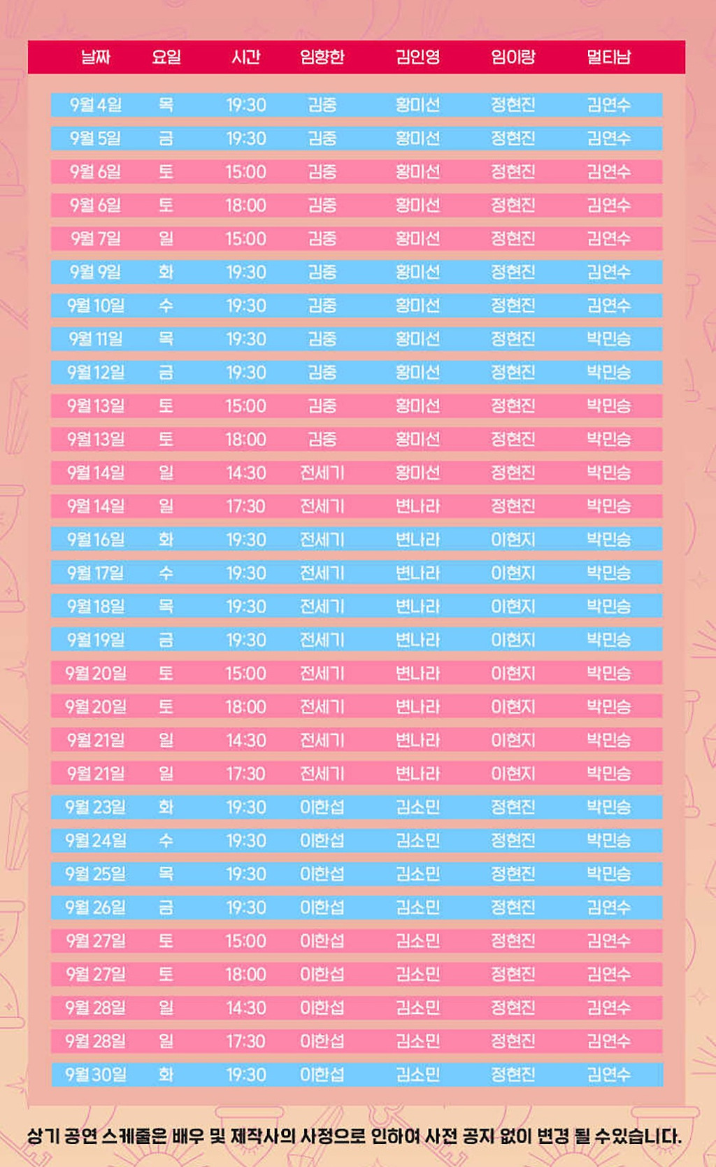 - 10/6(월) 추석당일 공연없음