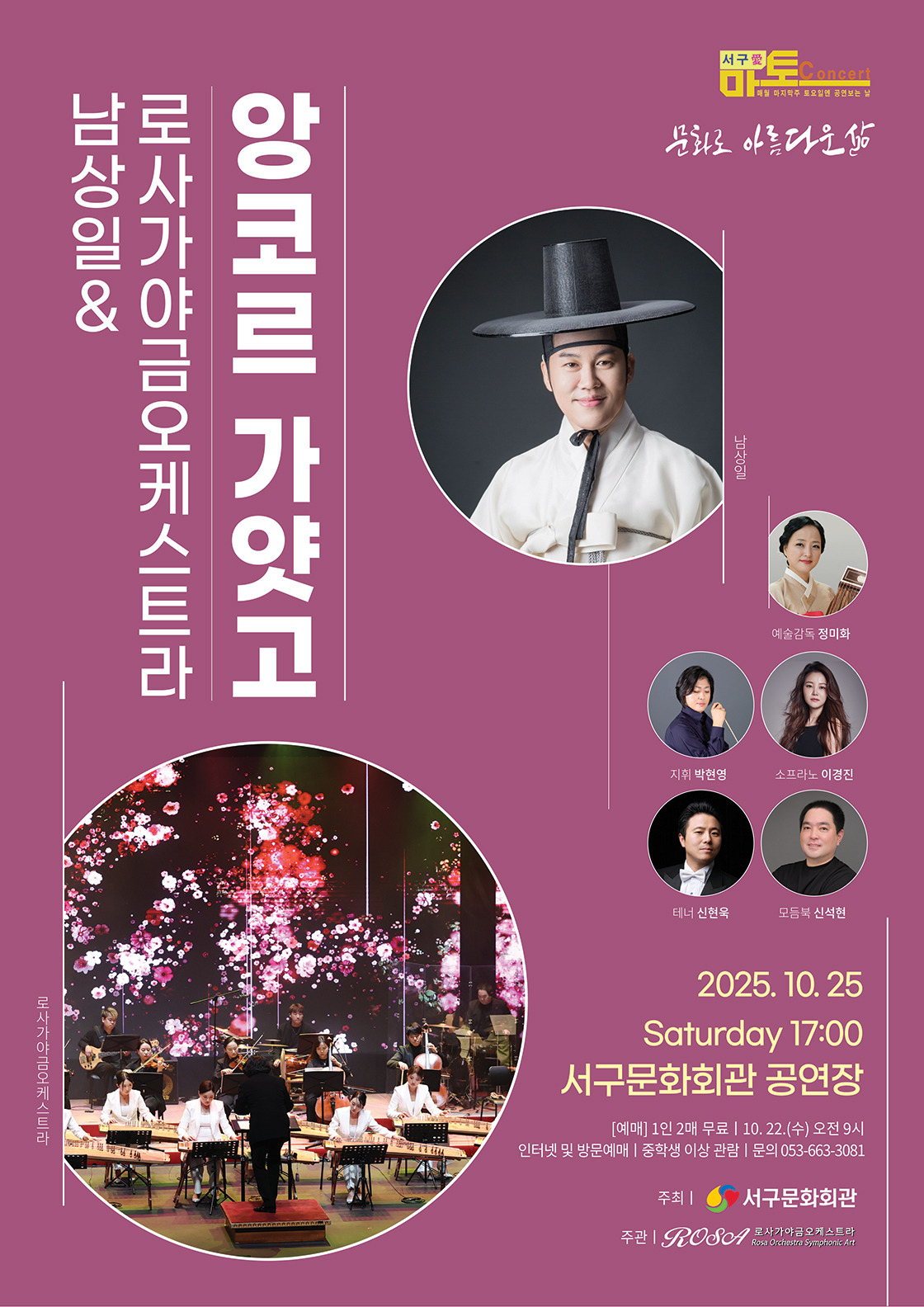 #대구연극 #대구뮤지컬 #대구공연 #대구문화 #대구국악 #대구무료공연 #대구공연정보 #서구문화회관 #마토콘서트 #소리꾼_남상일 #로사가야금오케스트라 #대명공연거리 #대구일반인극단 #대구일반인연극 #해아람 #포시즌스카이 #소극장길 #대관문의 #앙코르가얏고