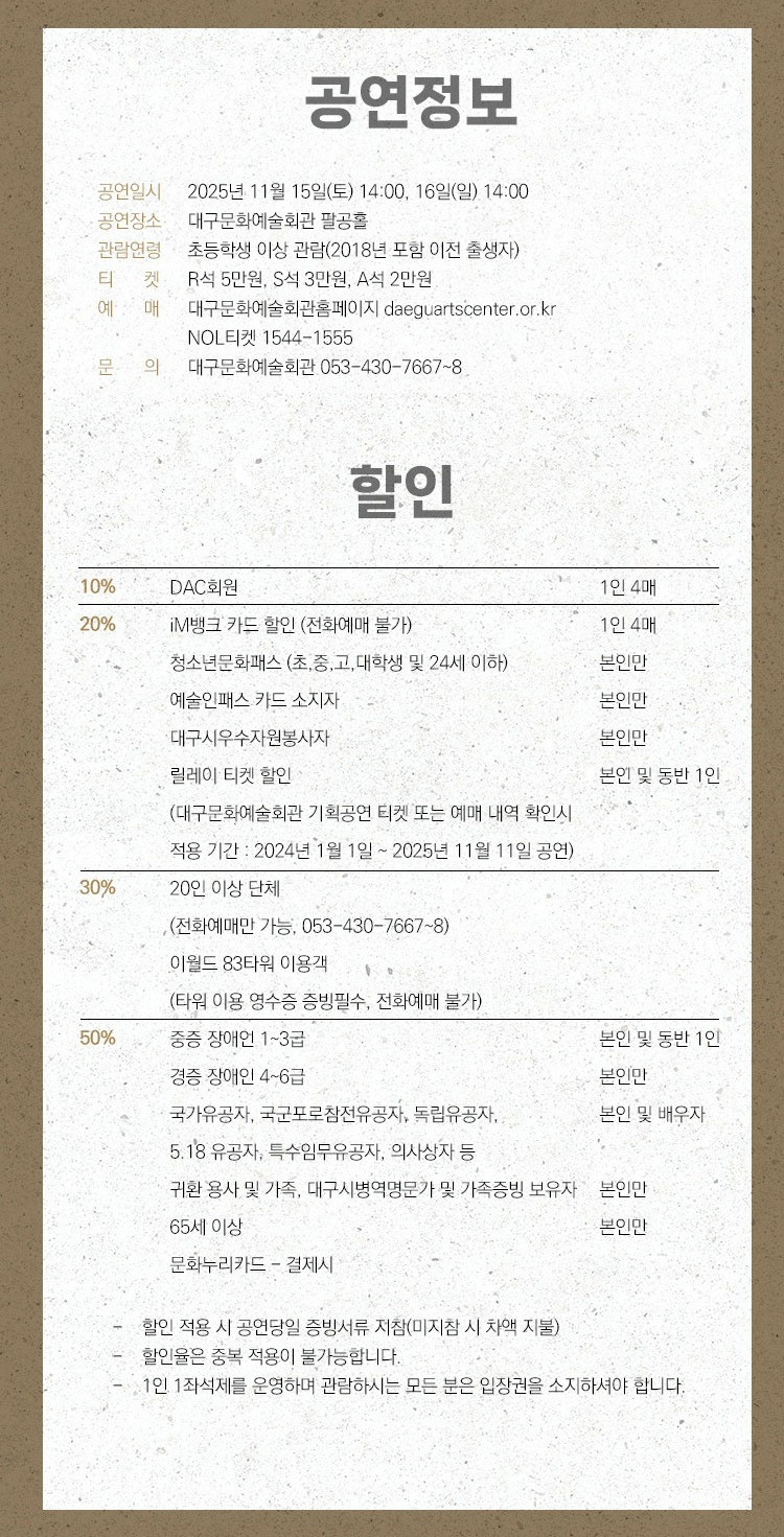 공연기간 2025.11.15 ~2025.11.16 토~일 14:00