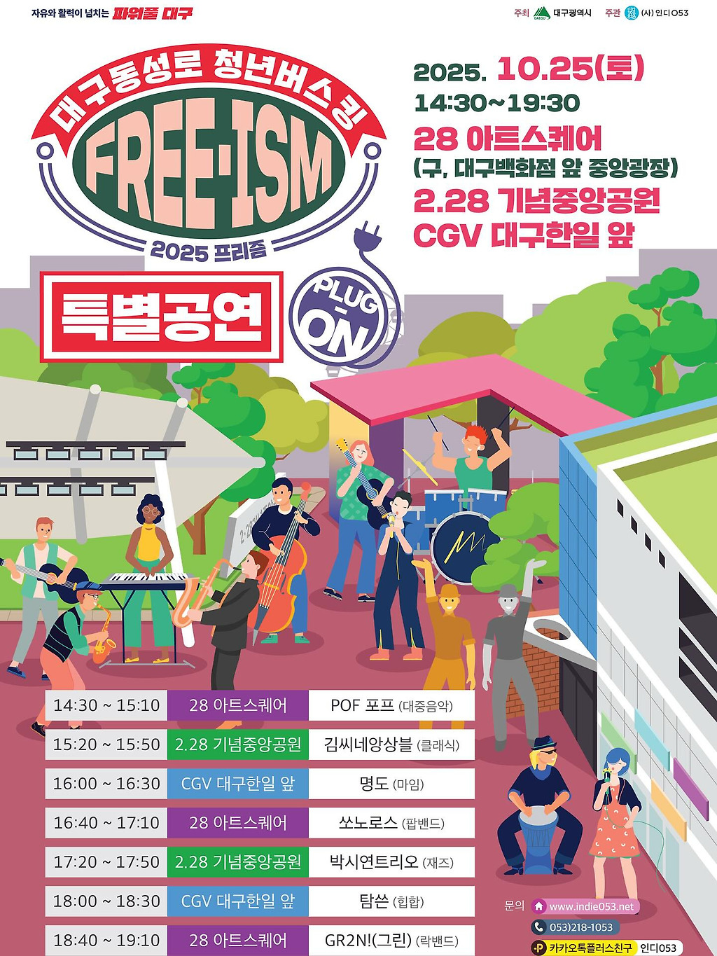 오후 2시 30분 28아트스퀘어를 시작으로 → 2·28기념중앙공원 → CGV 대구한일 앞으로 이어지는 청년예술가들의 릴레이 무대! 기대해 주셔도 좋겠습니다