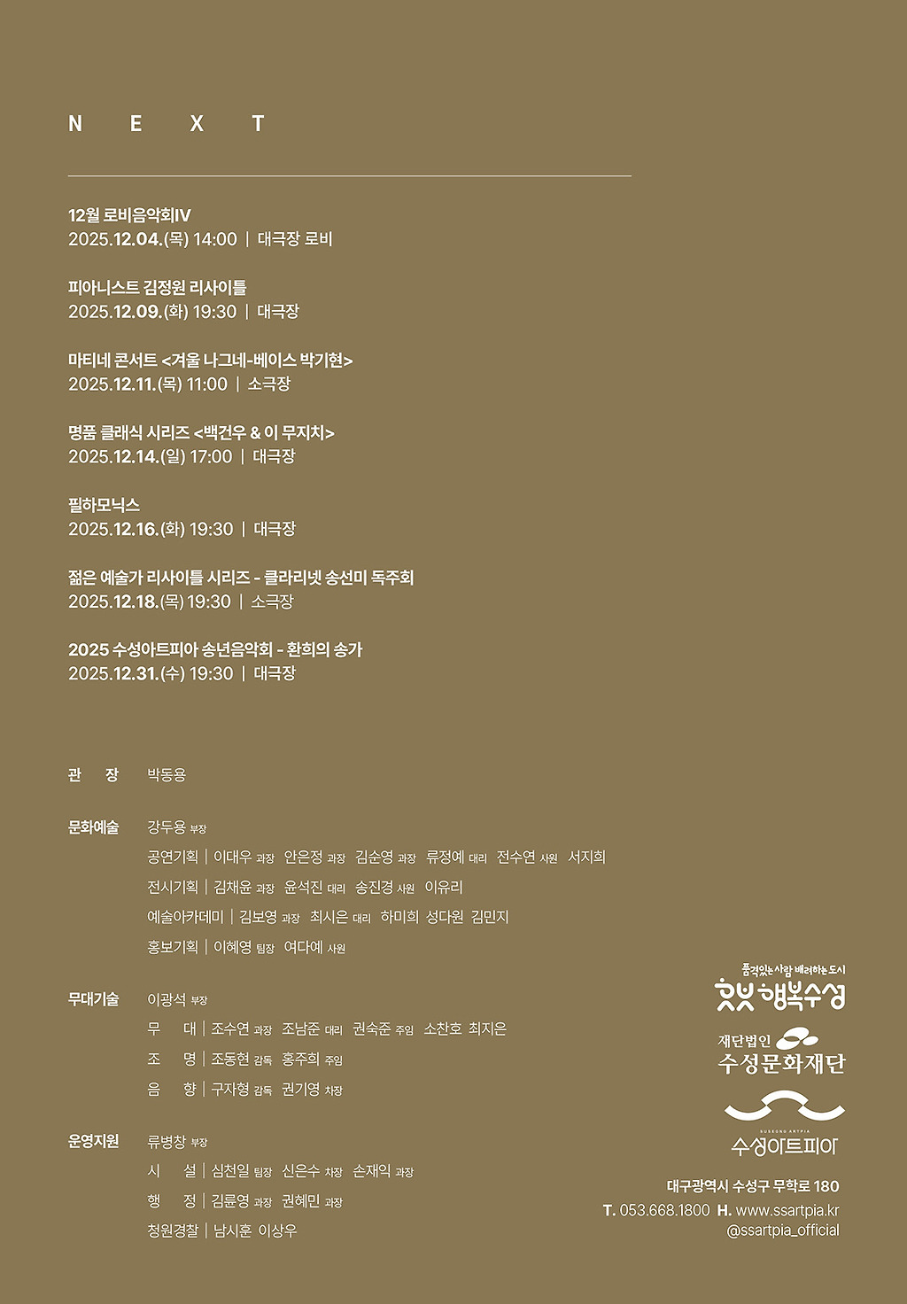 문의 : 053) 668-1800 ((재)수성문화재단 수성아트피아)