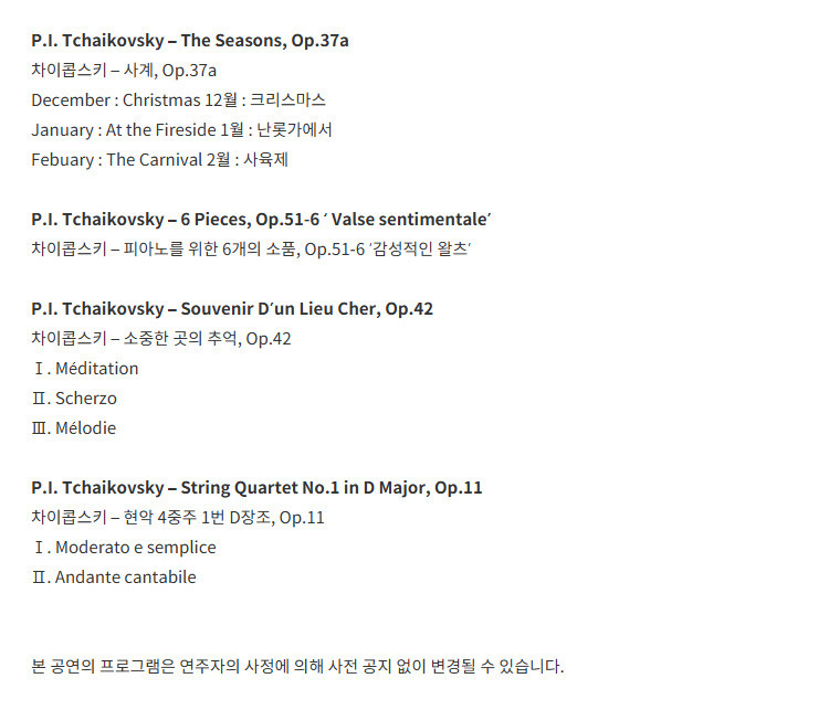 컴포저 하이라이트 : 차이콥스키의 조각 - 대구 | NOL 티켓