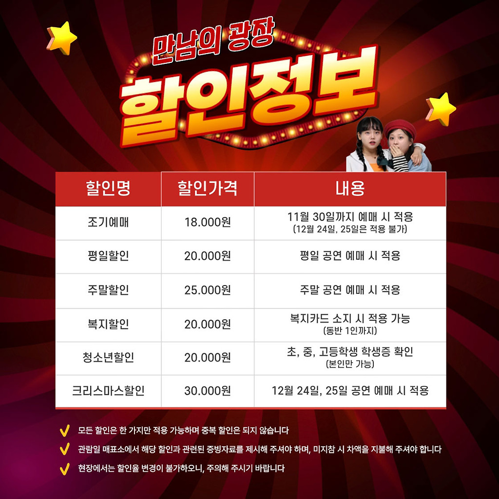 금 20시 / 토 16시, 19시 / 일 15시, 18시