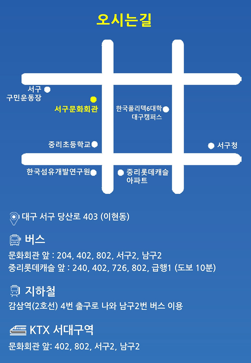#대구연극 #대구뮤지컬 #대구공연 #대구문화 #대구콘서트 #대구무료공연 #대구공연정보 #서구문화회관 #마토콘서트 #김현철_콘서트 #대명공연거리 #대구일반인극단 #대구일반인연극 #해아람 #포시즌스카이 #소극장길 #대관문의