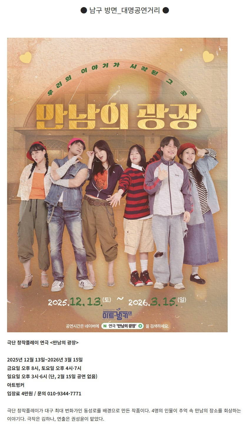 대구 공연정보 및 관람 대구일반인극단 해아람 https://www.postype.com/@dg-art 포스타입