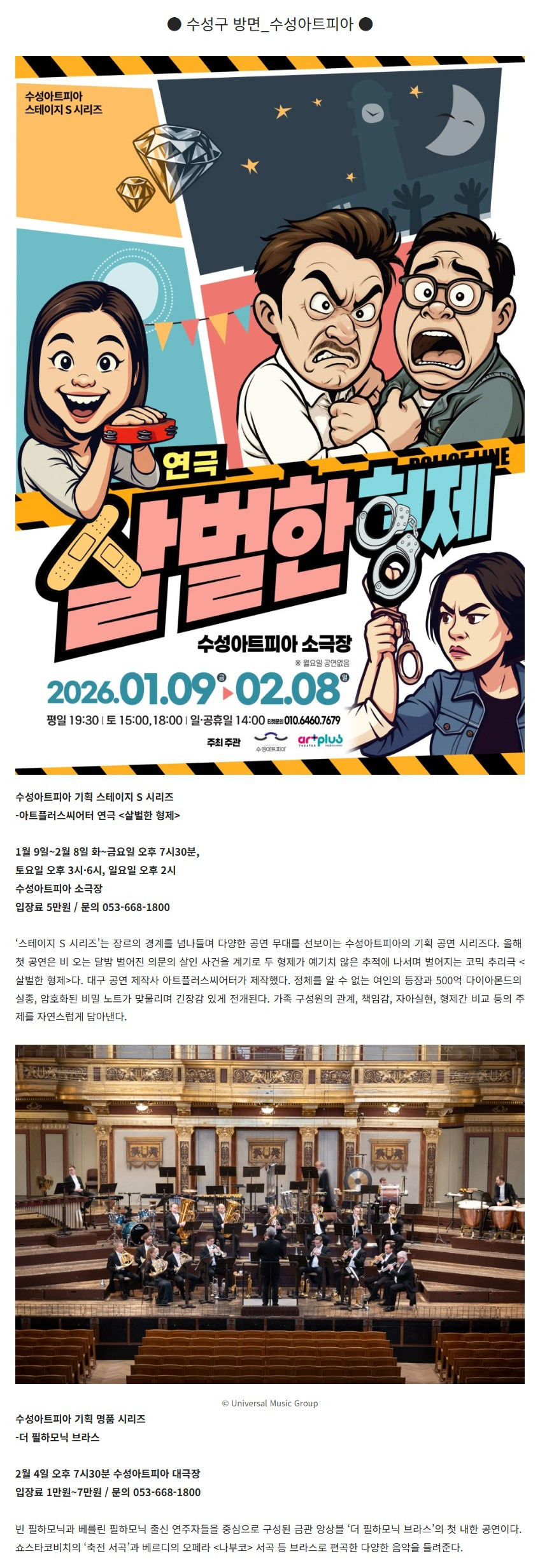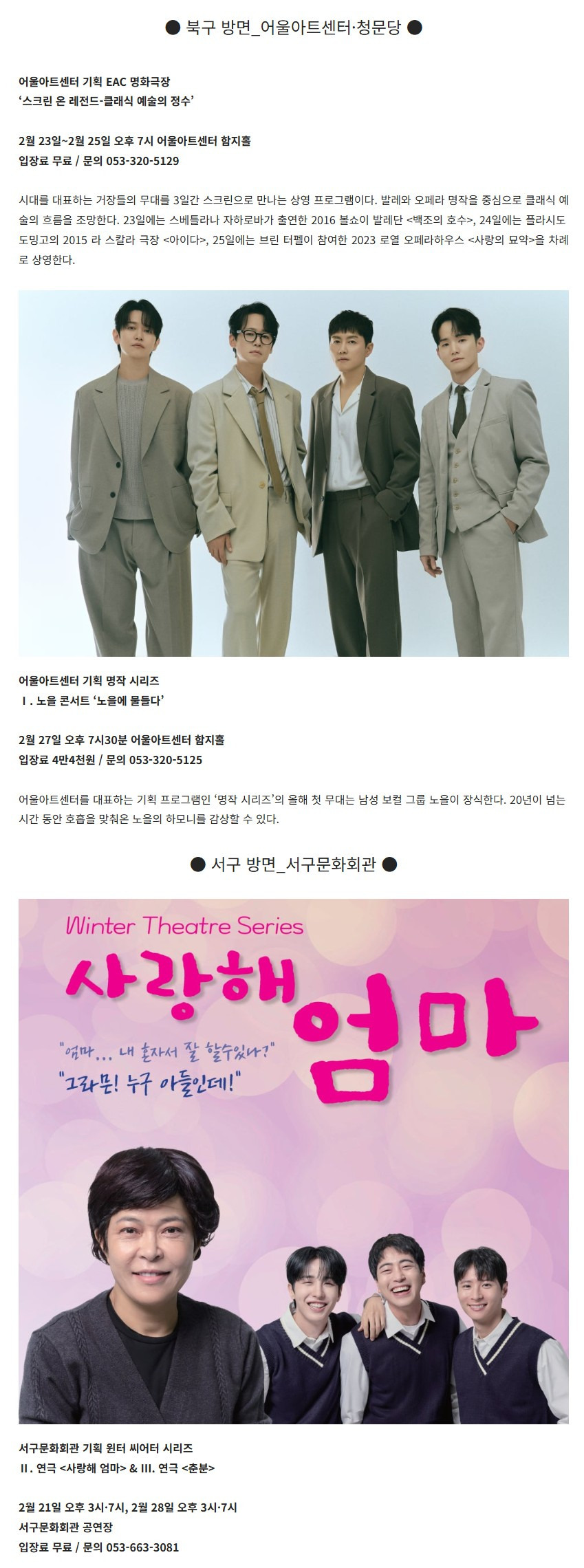 #대구연극 #대구뮤지컬 #대구공연 #대구문화 #대구무료공연 #대구공연정보 #대구클래식 #대명공연거리 #대구전시 #02월대구공연정보 #대구일반인극단 #대구일반인연극 #해아람 #포시즌스카이 #소극장길 #대관문의