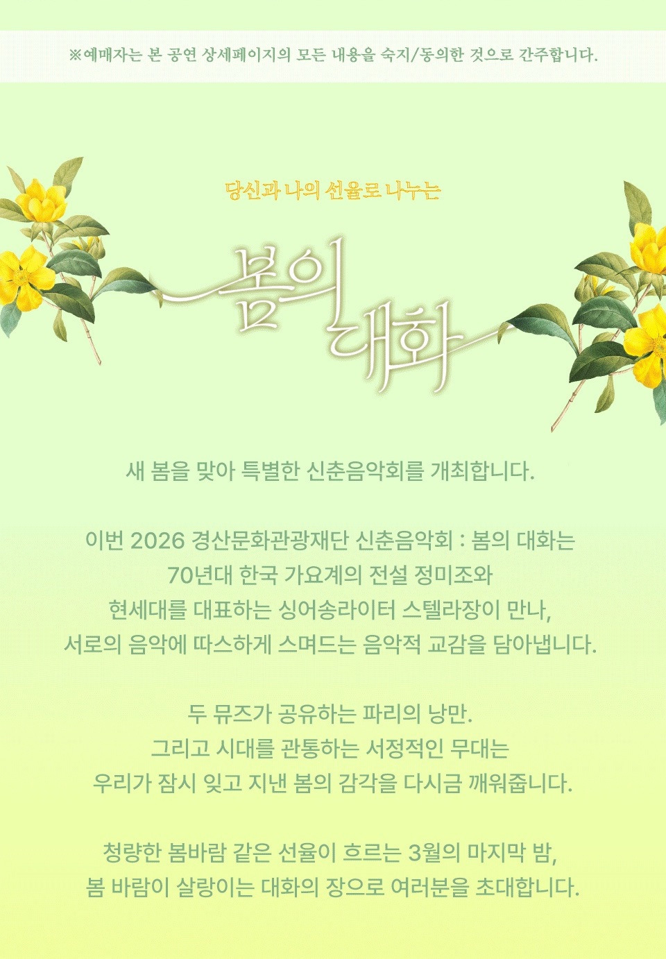 예스24 티켓 / 2026 경산문화관광재단 신춘음악회 : 봄의 대화 (정미조X스텔라장)