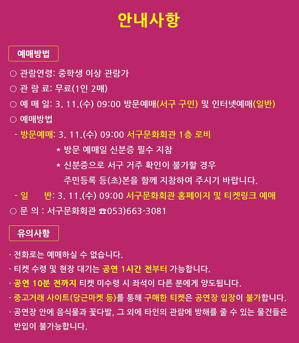 대구공연관람 및 정보문의 https://open.kakao.com/o/gHm2LEbg 오픈쳇팅방