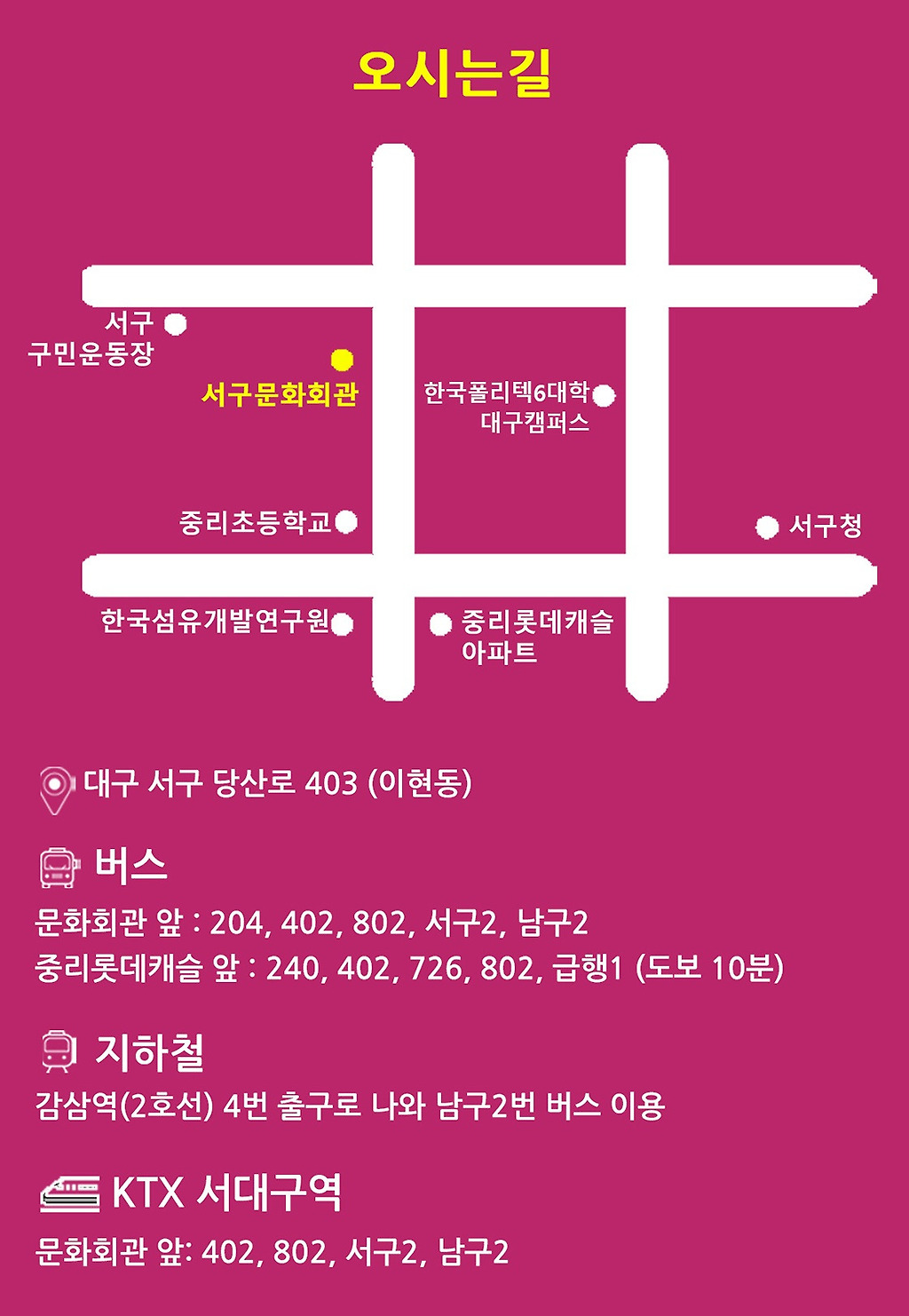 문의 : 053) 663-3081 (서구문화회관)