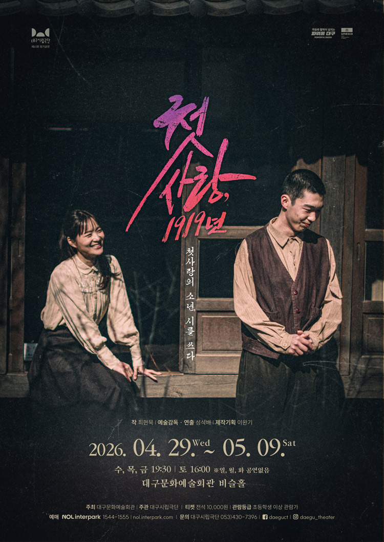 #대구연극 #대구뮤지컬 #대구공연 #대구문화 #대구공연정보 #대구문화예술회관 #대구시립극단 #연극_첫사랑_1919년 #대명공연거리 #대구일반인극단 #대구일반인연극 #해아람 #포시즌스카이 #소극장길 #대관문의 #연극_아름다운사인