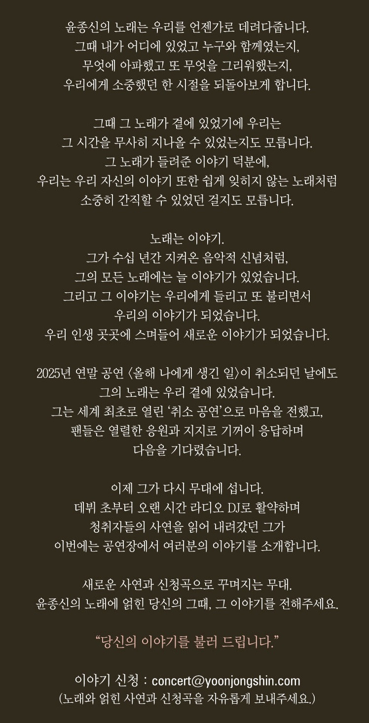 예스24 티켓 / [대구] 2026 윤종신 전국투어 콘서트 〈윤종신 그리고 나〉