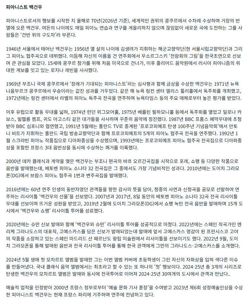 데뷔 70주년 기념 백건우 피아노 리사이틀 - 대구 | NOL 티켓