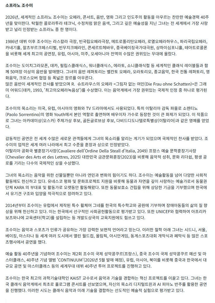 조수미 세계무대 데뷔 40주년 기념공연 - 대구 | NOL 티켓