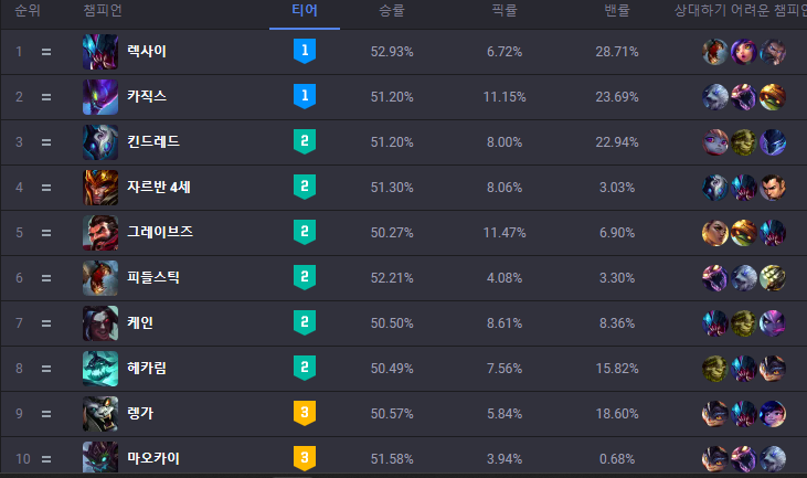 렉사이가 1티어 하는 걸 보네