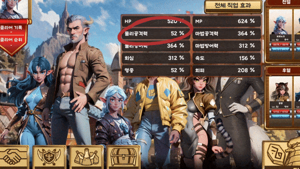 직업에 따라 달라지는 전체 파티 효과