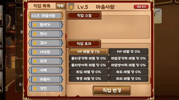 레벨에 따라 열리는 50가지 직업