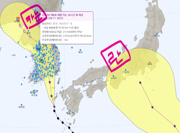 태풍 카눈 예상 경로랑 행동요령, 재난문자 현황