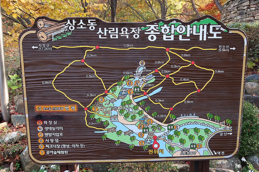 작년에 녹색여행도, 화담숲도 날라가서 일요일날 부모님 모시고 근처에 상소동산림욕장으로 향했습니다.주차장은 여기 말고 오토캠핑장 앞에 하는 것을 추천합니다.주차장에서 상소동삼림욕장으로 걷는길인데, 오른쪽이 오토캠핑장입니다.산림욕장으로 진입하는 다리입니다.다리 건너 메타세콰이어의 모습입니다. 다음주면 노란색으로 변할 거 같습니다.산림욕장 안내도인데 주변만 돌기로 했습니다.