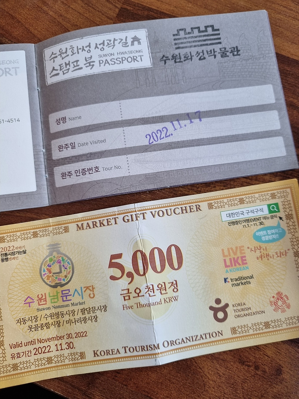 몇주전 혼자 수원화성 성곽길 스탬프 투어를 했었어요.그 날 완주 후 받은 수원지역상품권이 사용 마지막 날이라 이 추운 날 수원으로 길을 나섰어요.배보다 배꼽이 더 큰 경우지만수원남문 왕갈비통닭도 먹고시장에서 이거저것 사들고 왔네요^^영화 극한직업을 보고 갔던 곳이였는데수원 갈때마다 들리곤 해요.