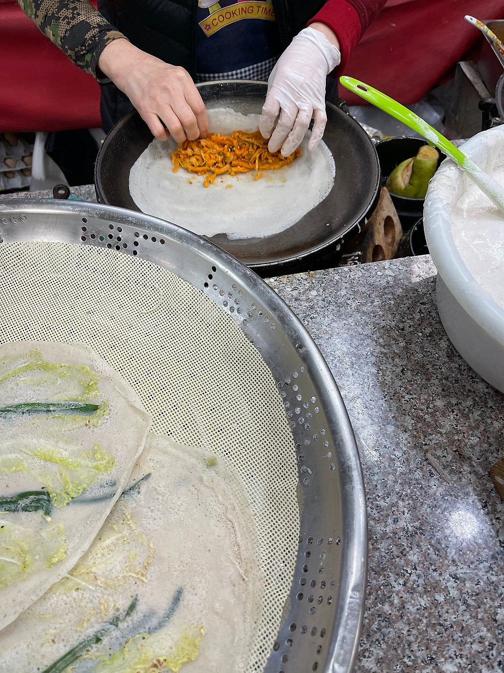 시장둘러보다보니 전병을 많이 부치시더라구요 메밀전병을 홍천에선 총떡이라 부르나 보더군요