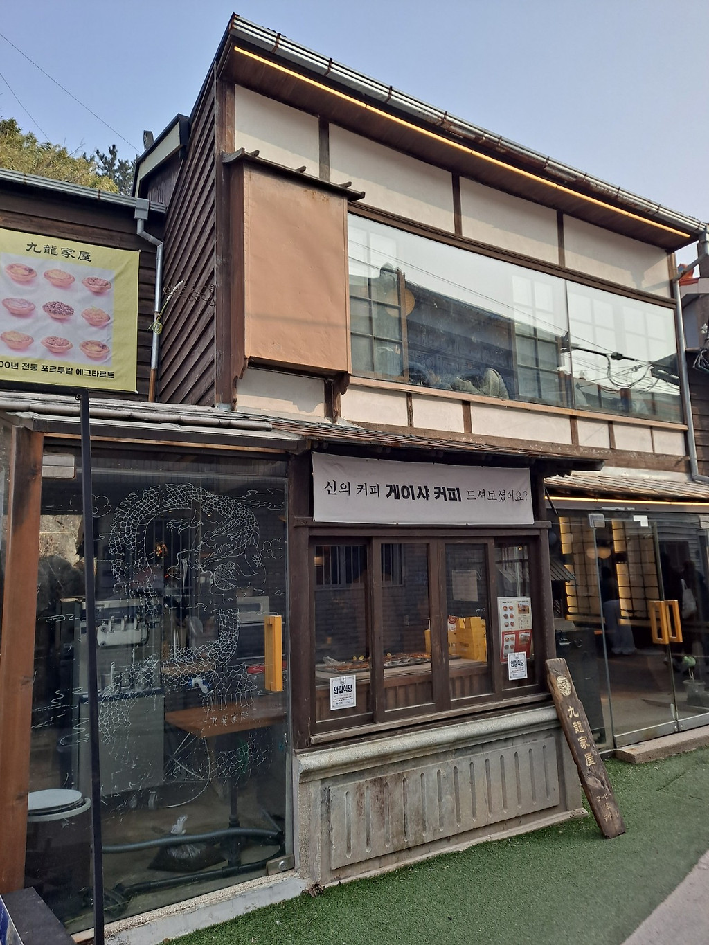 그래도 비가 안와서 다행으로 생각하면서 일본인마을, 구룡포를 구경하면서 카페 구룡가옥에서 타르트 먹고~~