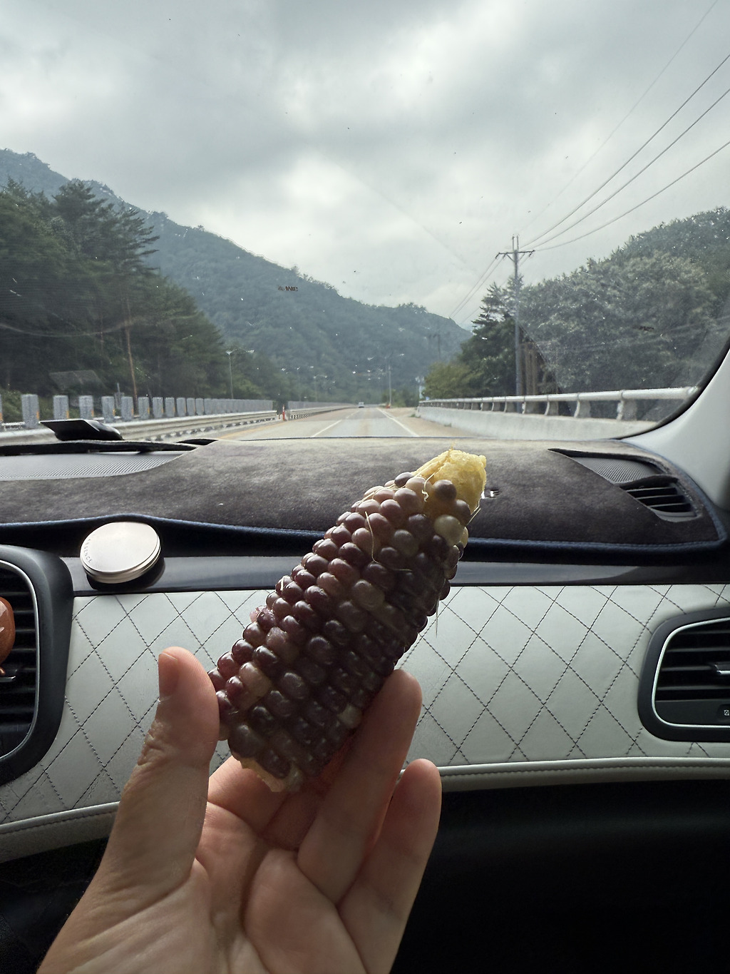 올라오는 길은 홍천까지는 국도스러운 길로 오게 됐는데? 덕분에 친구가 여행 내내 노래 부르던 강원도 찰옥수수도 먹으면서 여유로웠다.