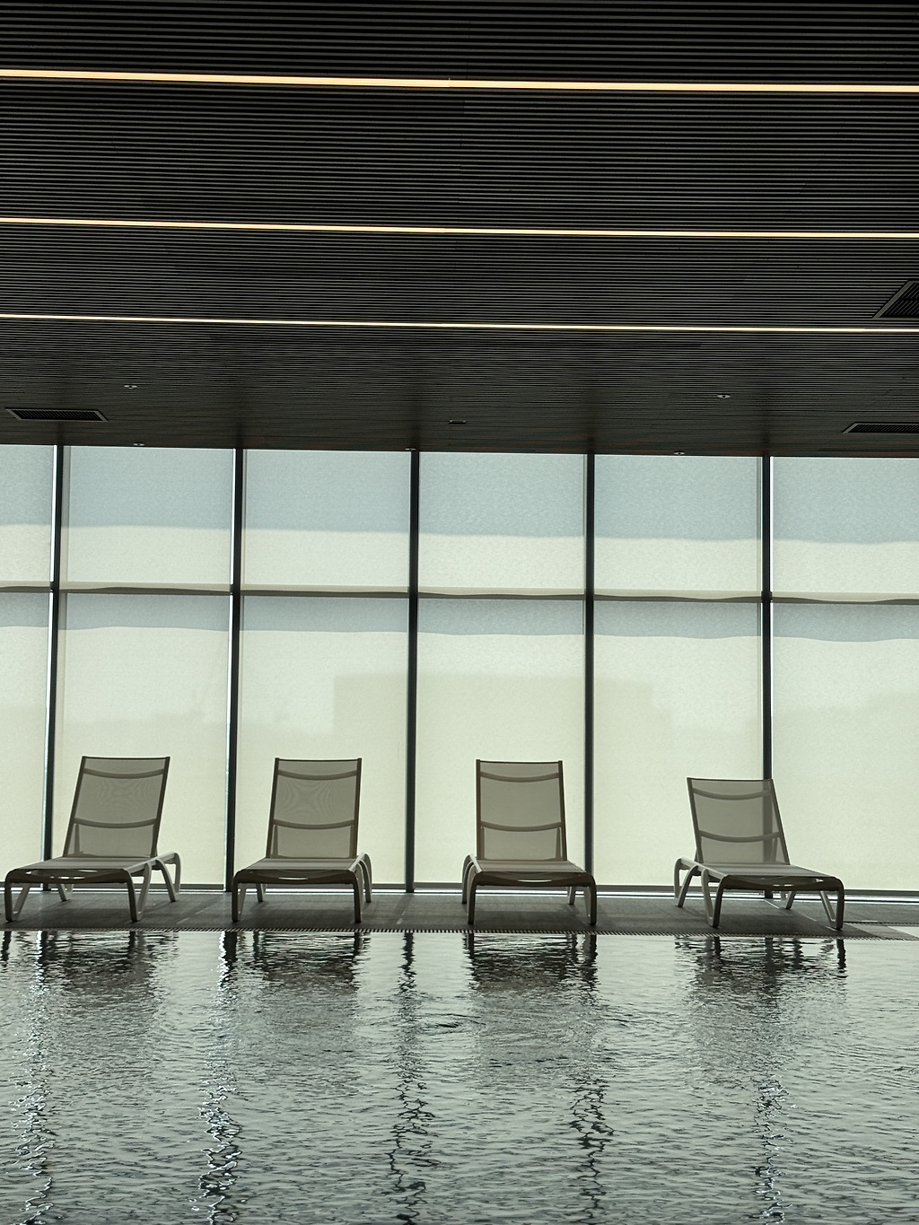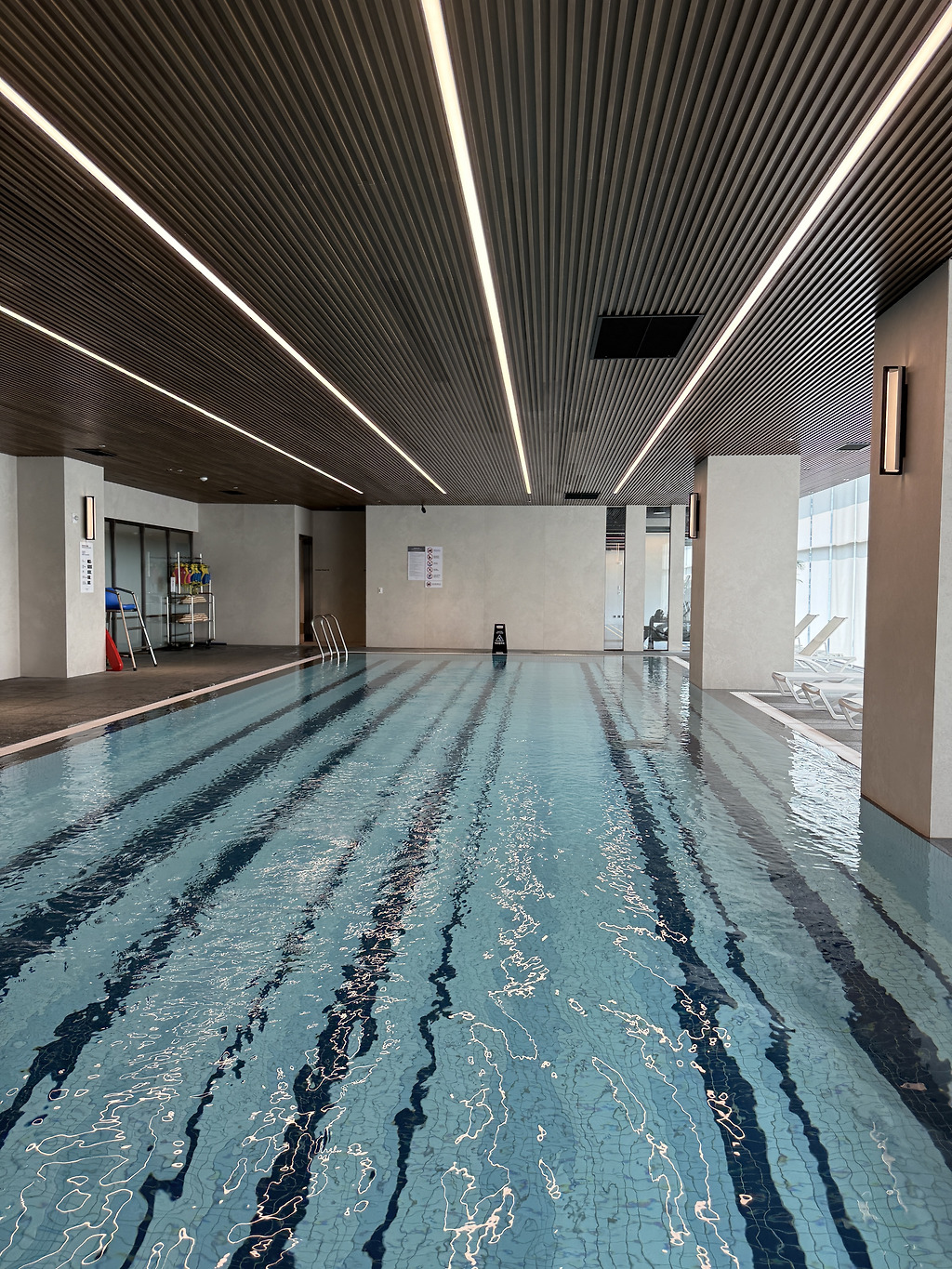 그리고 전날 체크인하면서 예약해둔 수영장. 투숙객은 투숙 기간 중 1회만 이용 가능하다고 하다. 9시로 예약해서 갔는데 한 팀 밖에 없어서 매우 쾌적하게 이용했다. 여전히 피곤했는데 물장구좀 치고 물에 떠서 팔랑팔랑 거리니 몸이 풀리는 느낌. 피로도 수용성인가?