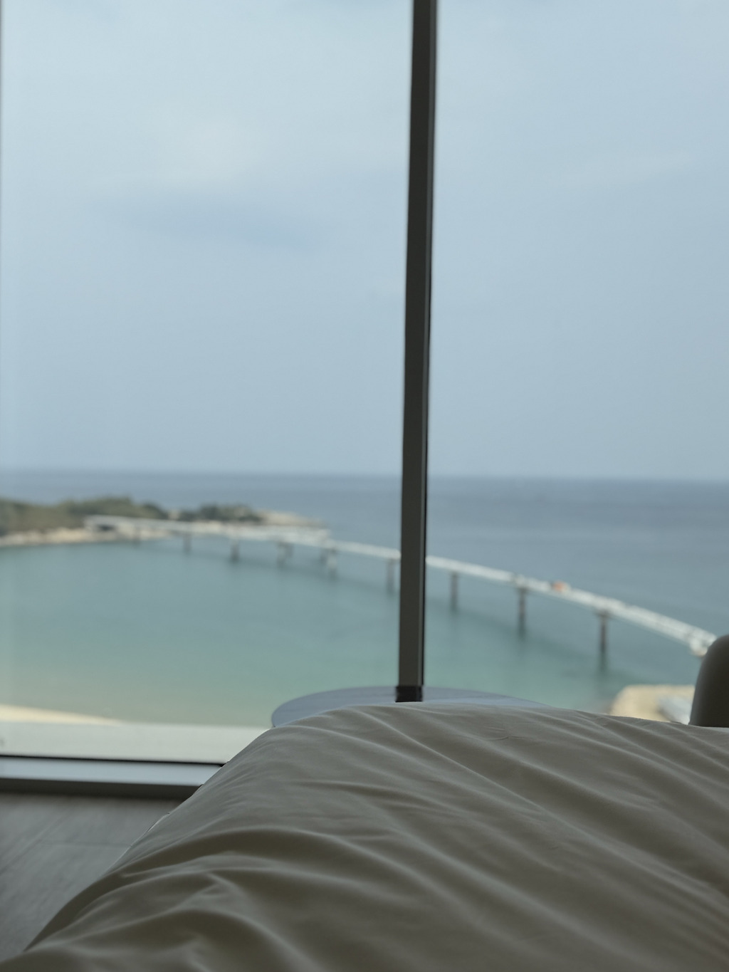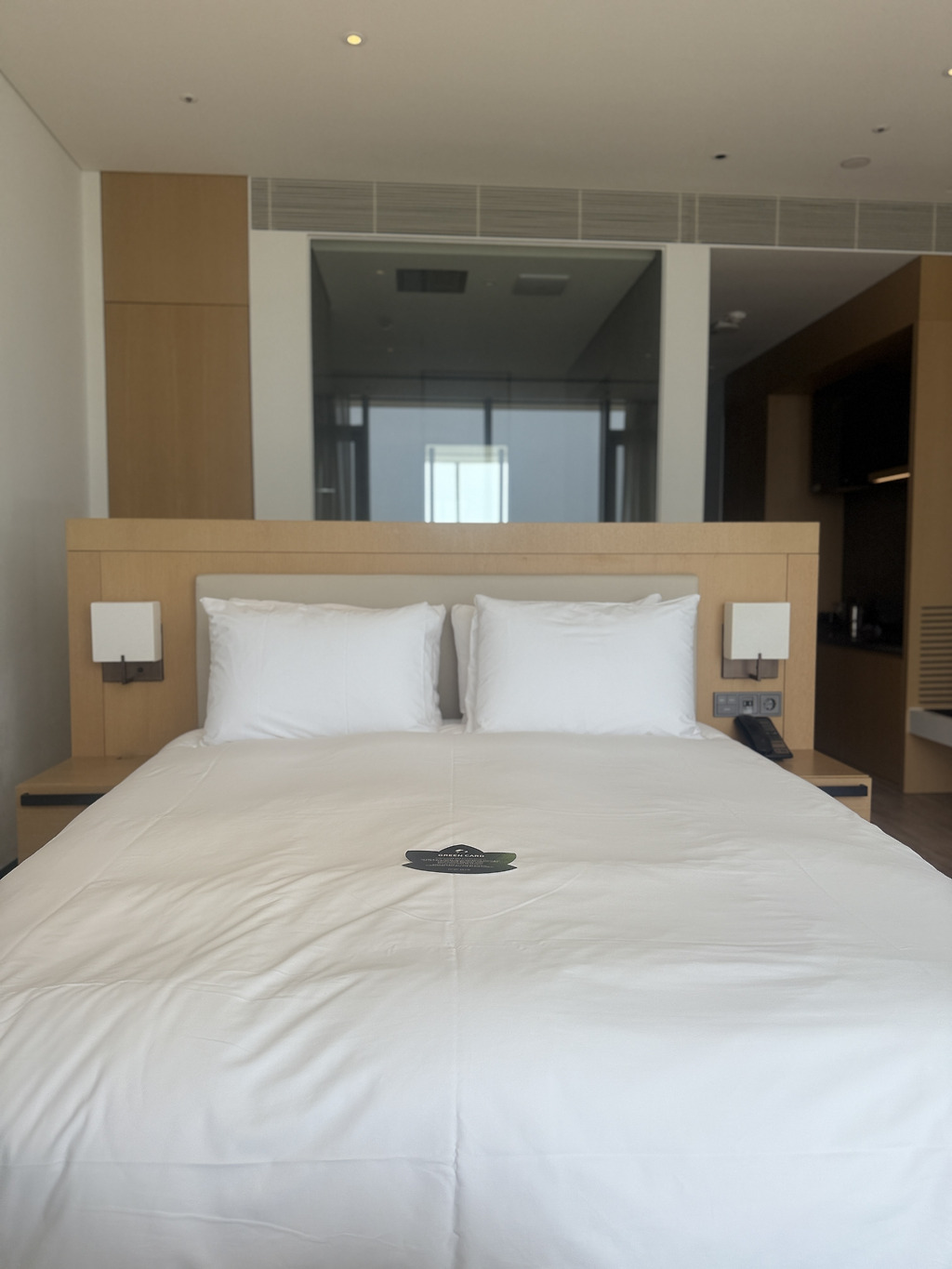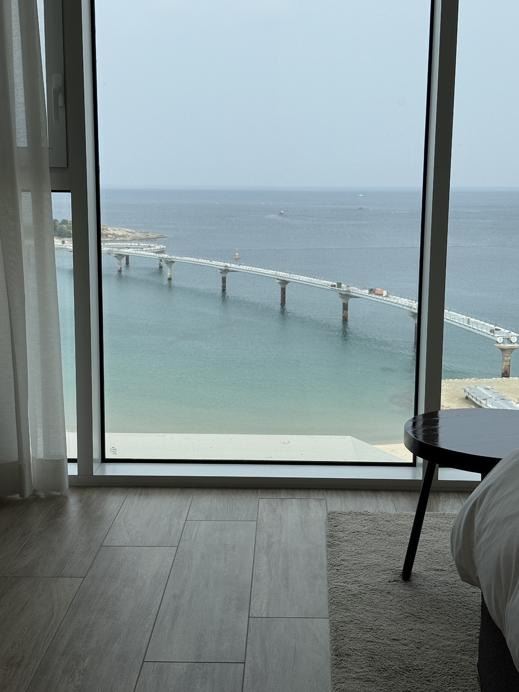 개인적으로 바다를 침대에서 정면에서 보는 객실에서 지내고 싶어서 침대가 2개 있는 타입보다 그냥 퀸 침대 하나 있는 객실을 택한 건 진짜 신의 한수이다. 그냥 침대에 기대기만 해도 그냥 힐링이었다.