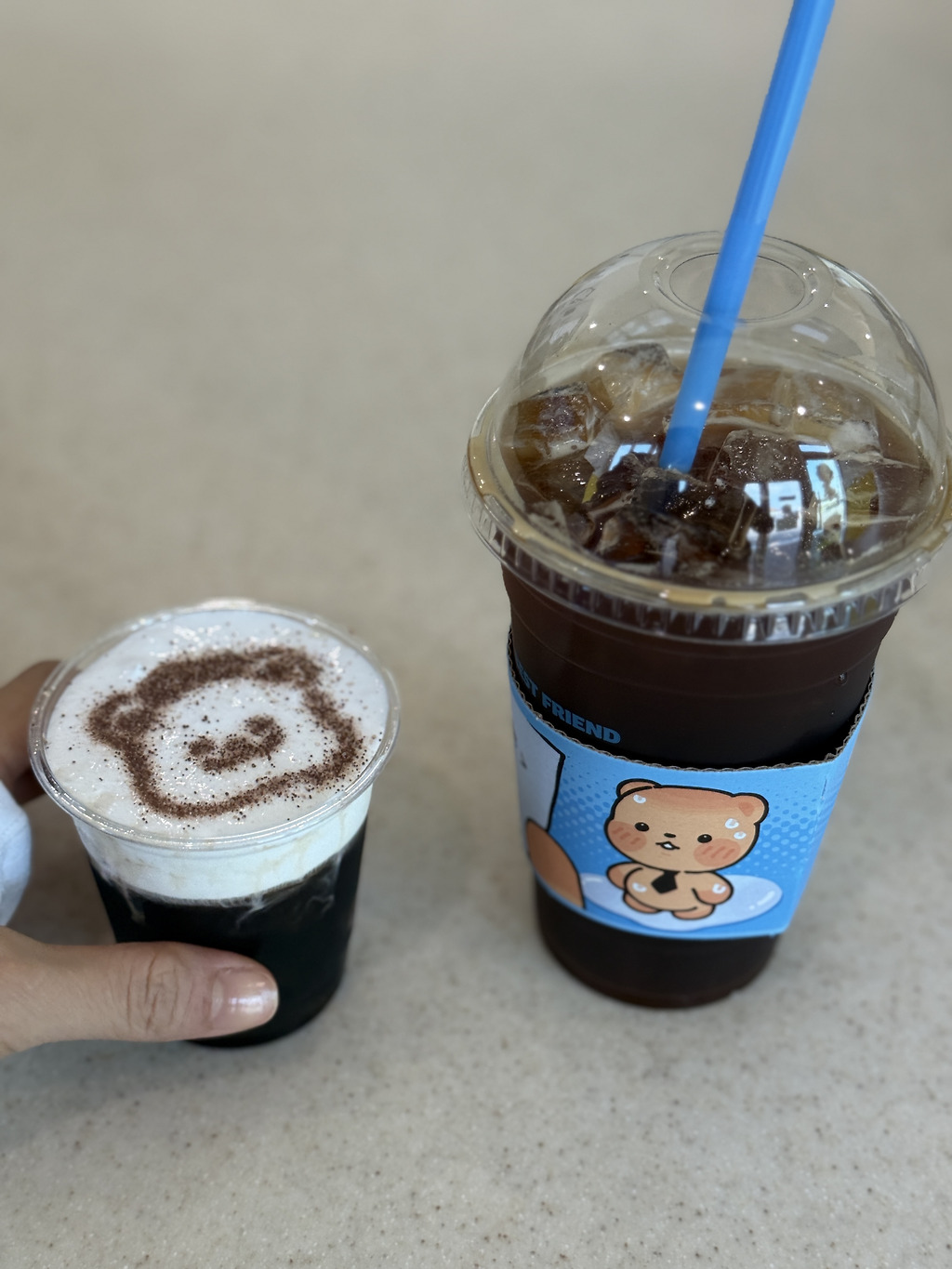 다시 숙소로 돌아가는데 모닝커피가 너무 먹고 싶은 것이다. 그래서 고성에서 메가커피 컴포즈 빽다방을 아무리 찾아도 안나오는데 그러다가 검색하다가 와드커피라는 곳이 있다는 걸 알아냈다고. 그리고 마침 숙소 근처여서 너무도 좋았던 동선. 가성비 좋게 모닝커피 득템. 특히 왼쪽 메뉴 맛있었다.