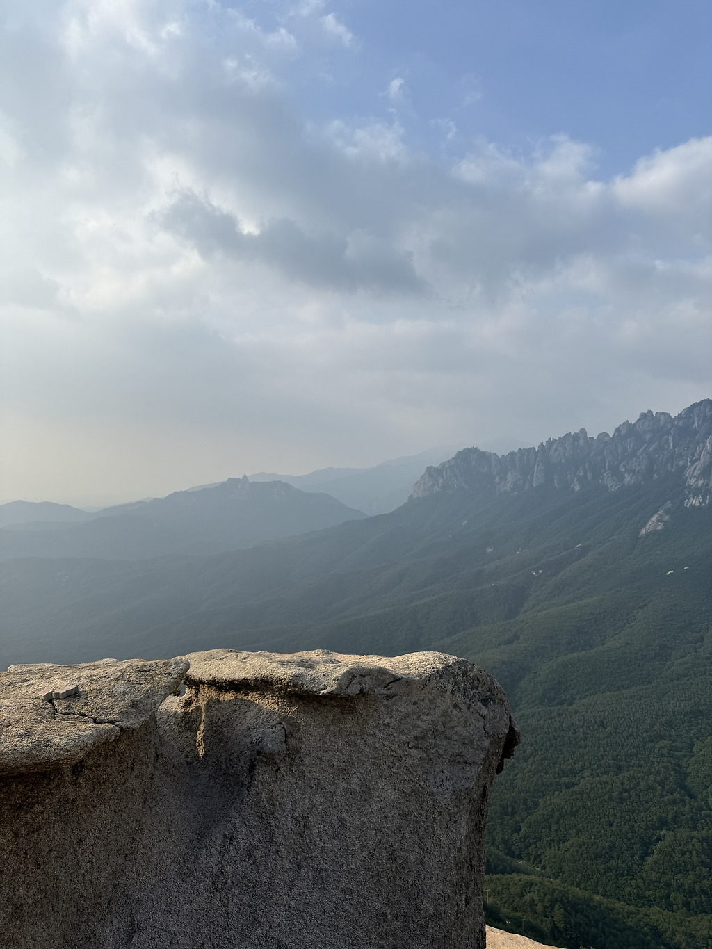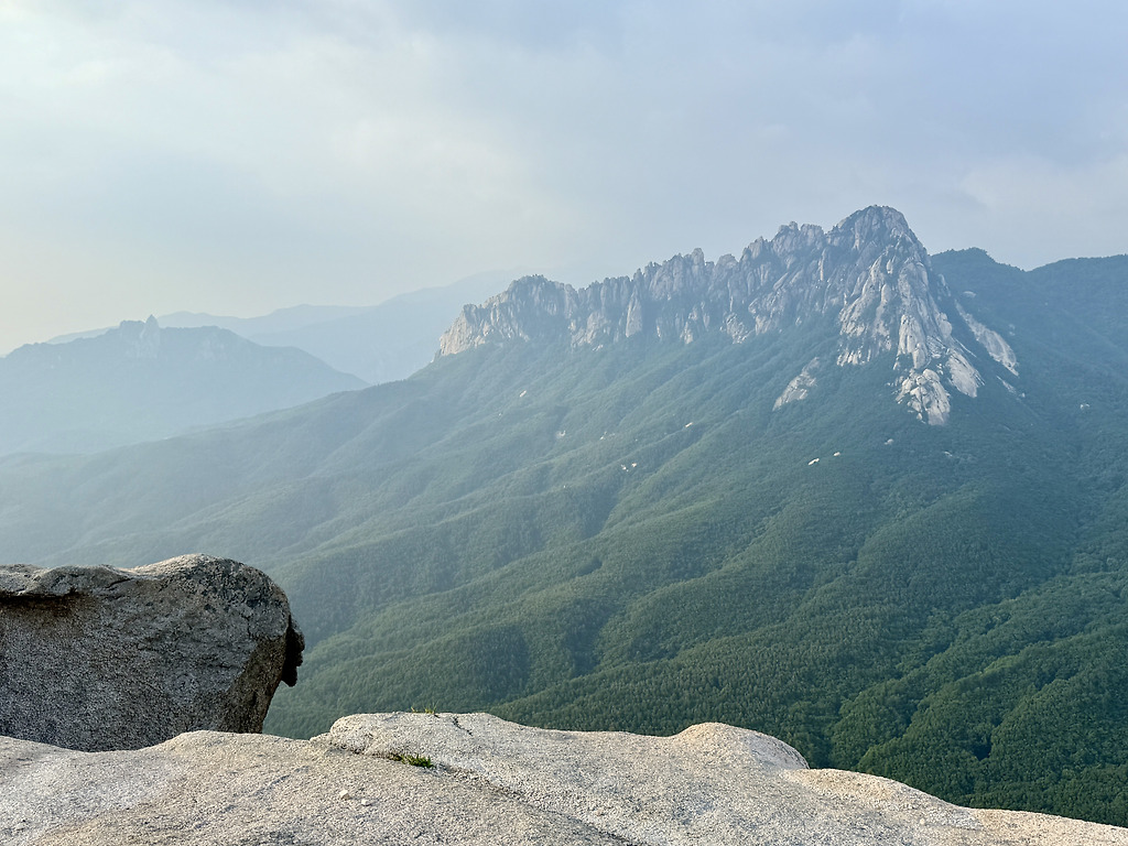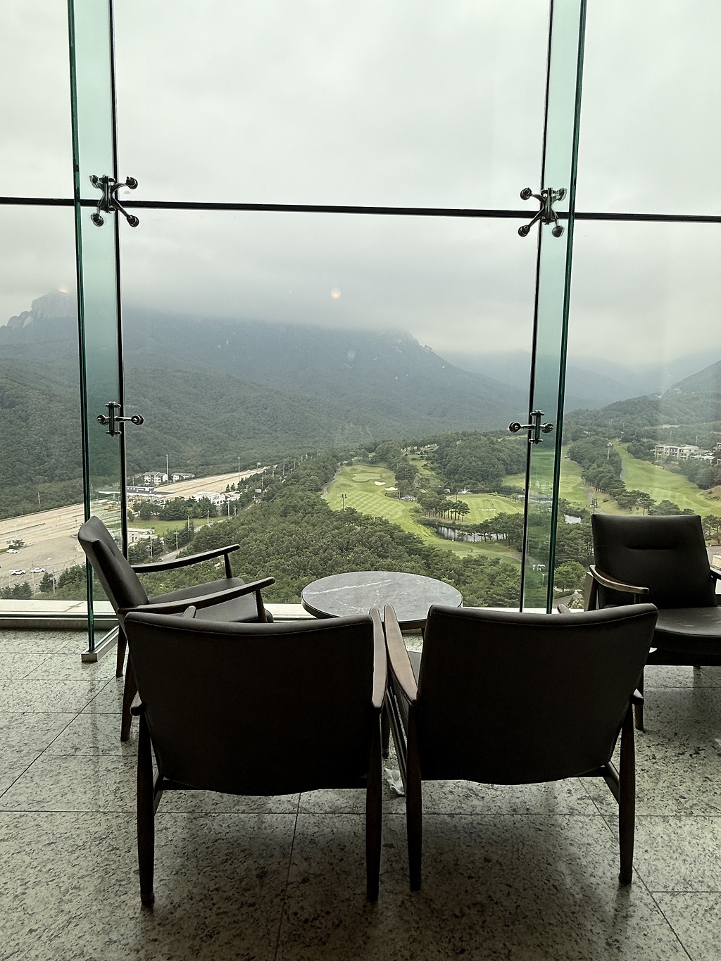 원래 내가 그린 풍경은 엘리베이터가 열리자마자 쫙 펼쳐진 울산바위뷰를 보며 입틀막하는 건데... 구름에 포위가 된 울산바위만 보게 되었다. 그래도 그런 상황이 아쉽지 않을만큼 그 가려진 풍경도 충분히 오랫동안 즐기고 왔다.