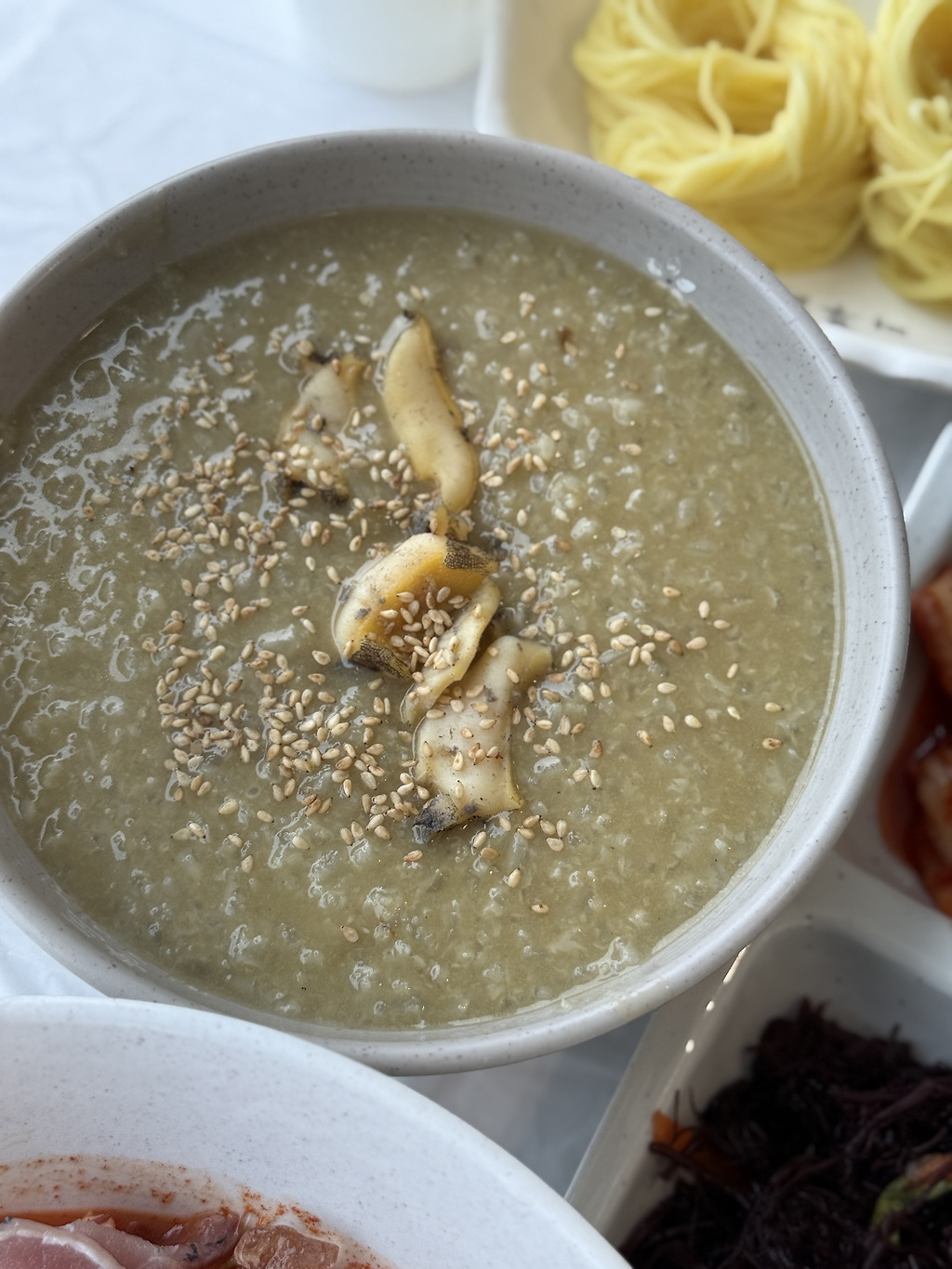 그리고 고성 봉포머구리집에서 먹은 물회랑 전복죽.
