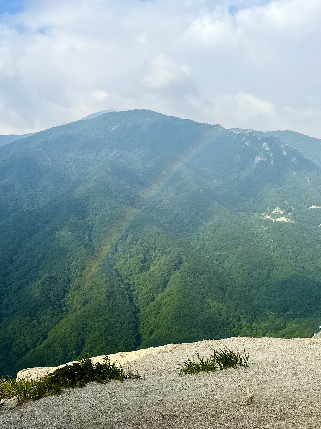 무지개가 사라질 때쯤 하산 (이때 날씨가 잠깐 다시 좋아졌다.)