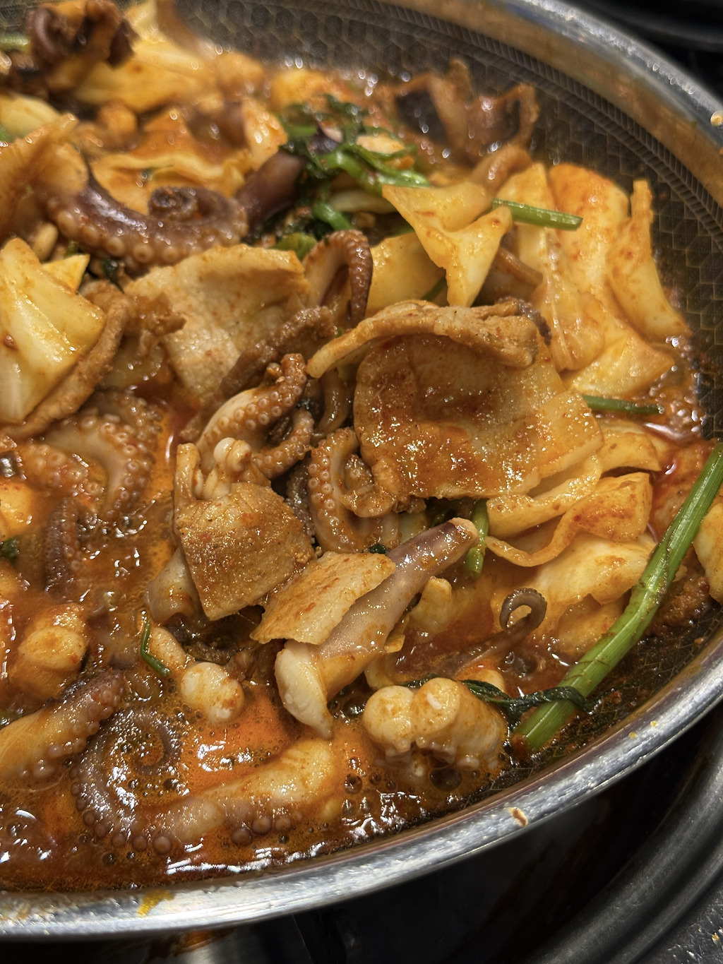 그리고 대망의 저녁은 사실 굉장히 여유롭게 카페에서 또 멍 때리다가 저녁 먹어야하는 곳들이 다 라스트오더 시간이 지나서 호기롭게 간 해물철판볶음집은 재료소진으로 일찍 문을 닫아서 (이게 P의 여행...) 친구랑 네이버 지도 켜고 영업중인 곳들 찾다가 결국 속초까게 가서 겨우 문 열은 곳에서 대충 저녁을 먹고.... (메뉴가 오징어 칼국수였다.)