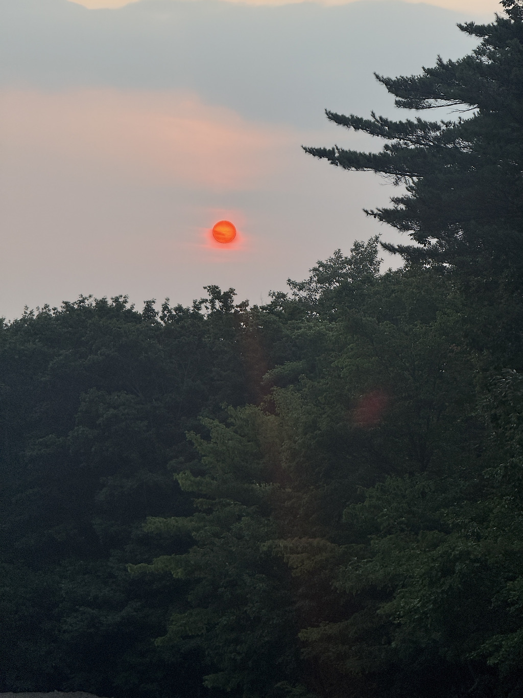 금강산 화암사 주차장에서 붉게 떠오른 해를 보고