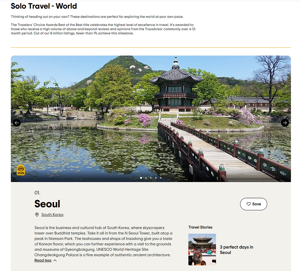 혼자 여행하기 좋은 도시 1위 '서울'