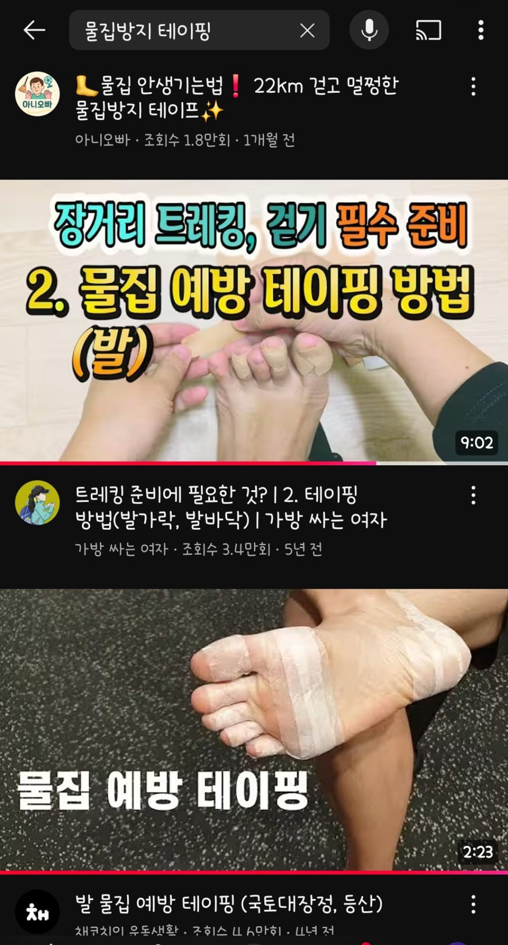 물집이 생기면 난이도가 두배로 올라간다라는 말에 너무너무 극공감.. 그리고 물집방지 테이브 추천하는거 보고 당장 사야겠다! 생각함