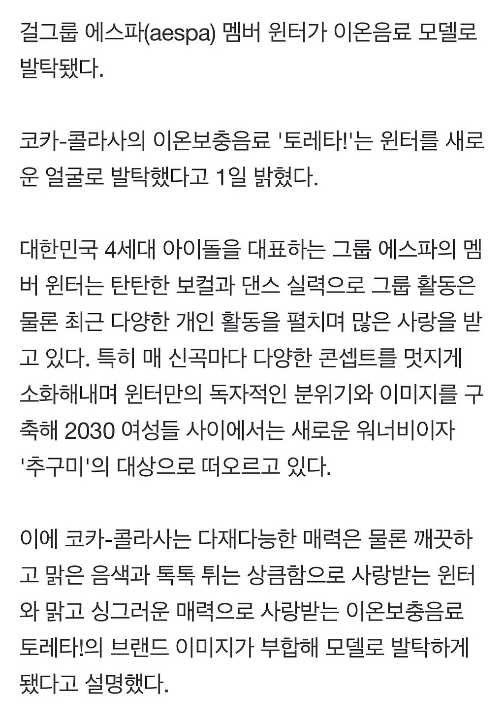 에스파 윈터 토레타 광고 4월중순 공개예정