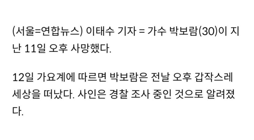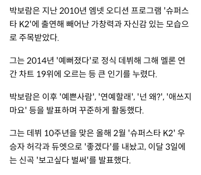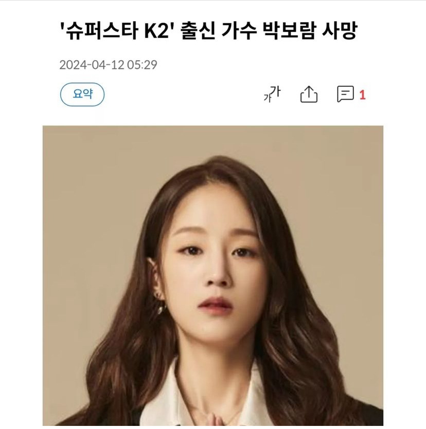 [기사] '슈퍼스타 K2' 출신 가수 박보람 사망