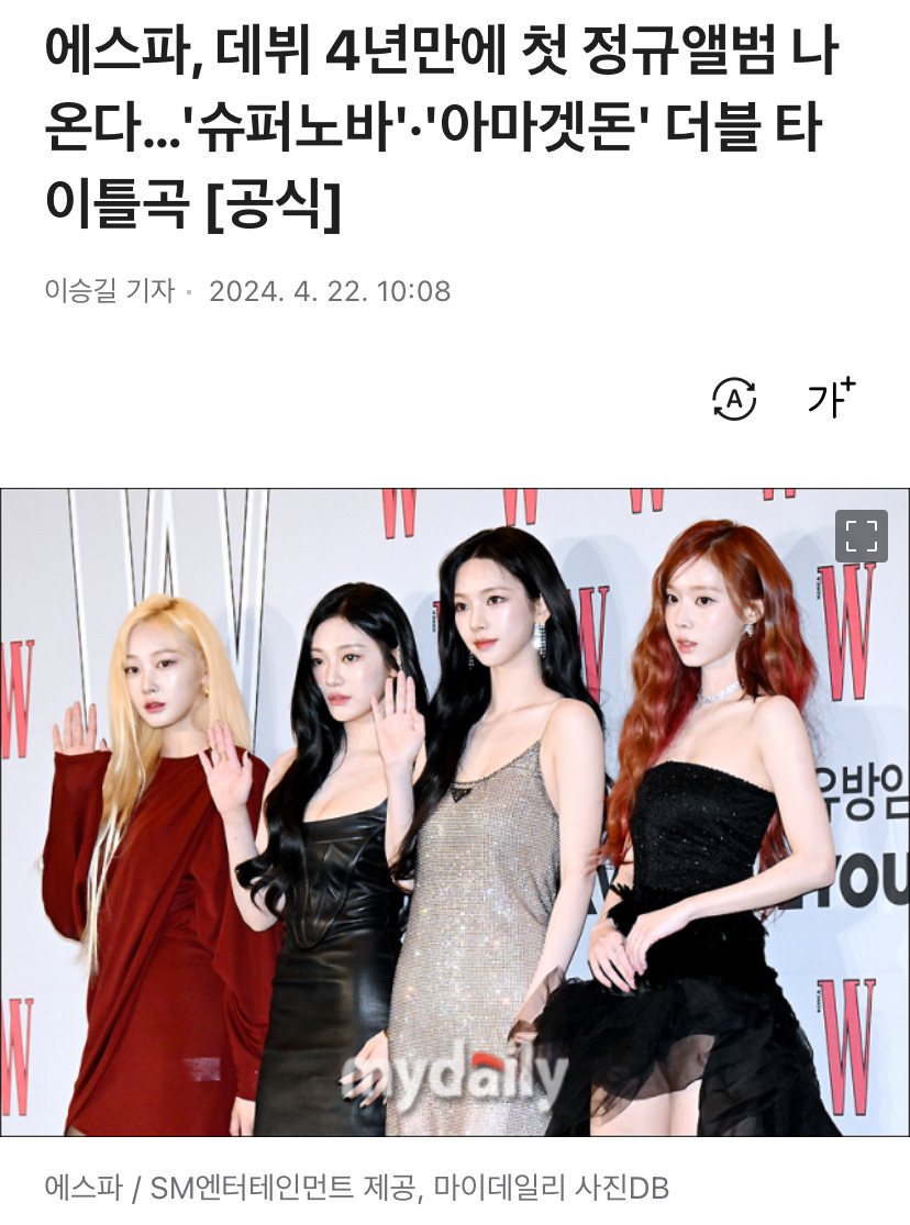 에스파, 데뷔 4년만에 첫 정규앨범 나온다…'슈퍼노바'·'아마겟돈' 더블 타이틀곡 [공식]