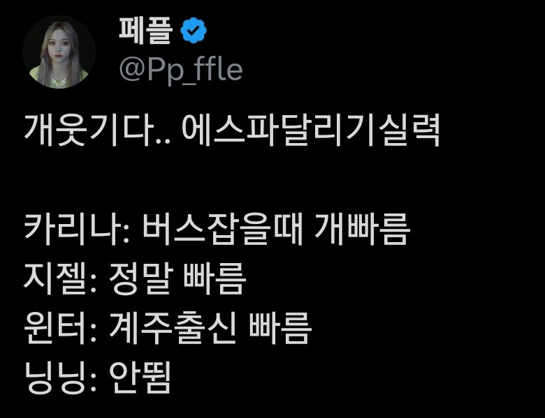 위버스에서 에스파 윈터가 알려주는멤버들 달리기실력.jpg