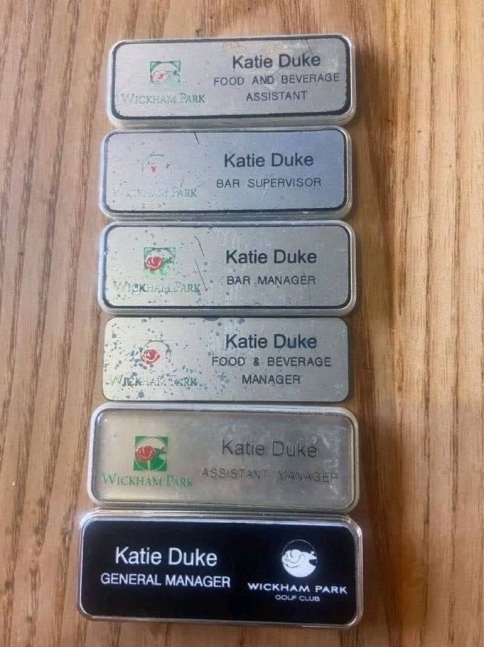 그녀의 커리어가 묻어나는 명찰들.jpg