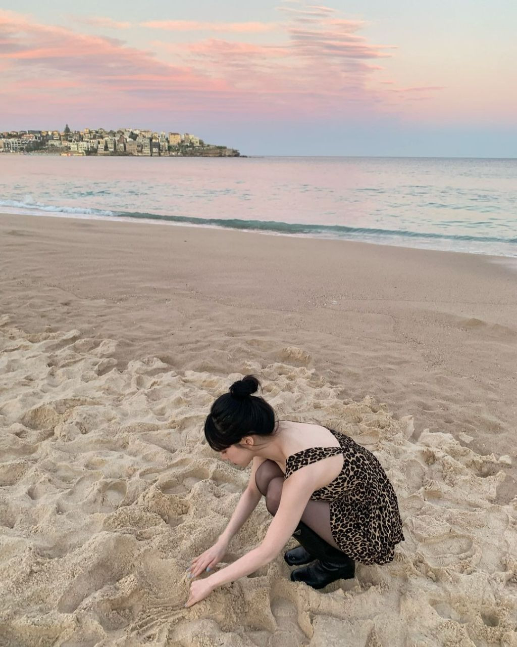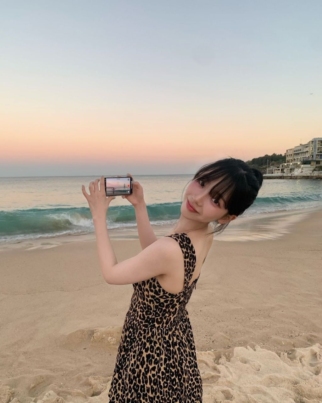 사진 속 카리나는 호피 무늬 초미니 원피스를 입고 카메라를 응시하고 있다. 카리나는 고릴라 등 동물 모형 앞에서 인증샷을 남기는가 하면 노을이 지는 바닷가를 배경으로 셀카를 찍었다.