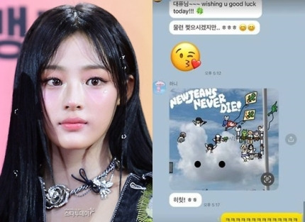 하니는 이어 ‘NEWJEANS NEVER DIE’라는 문구가 새겨진 팬 아트 이미지도 전했다. 민희진도 이에 파워퍼프걸 이모티콘으로 화답했다.