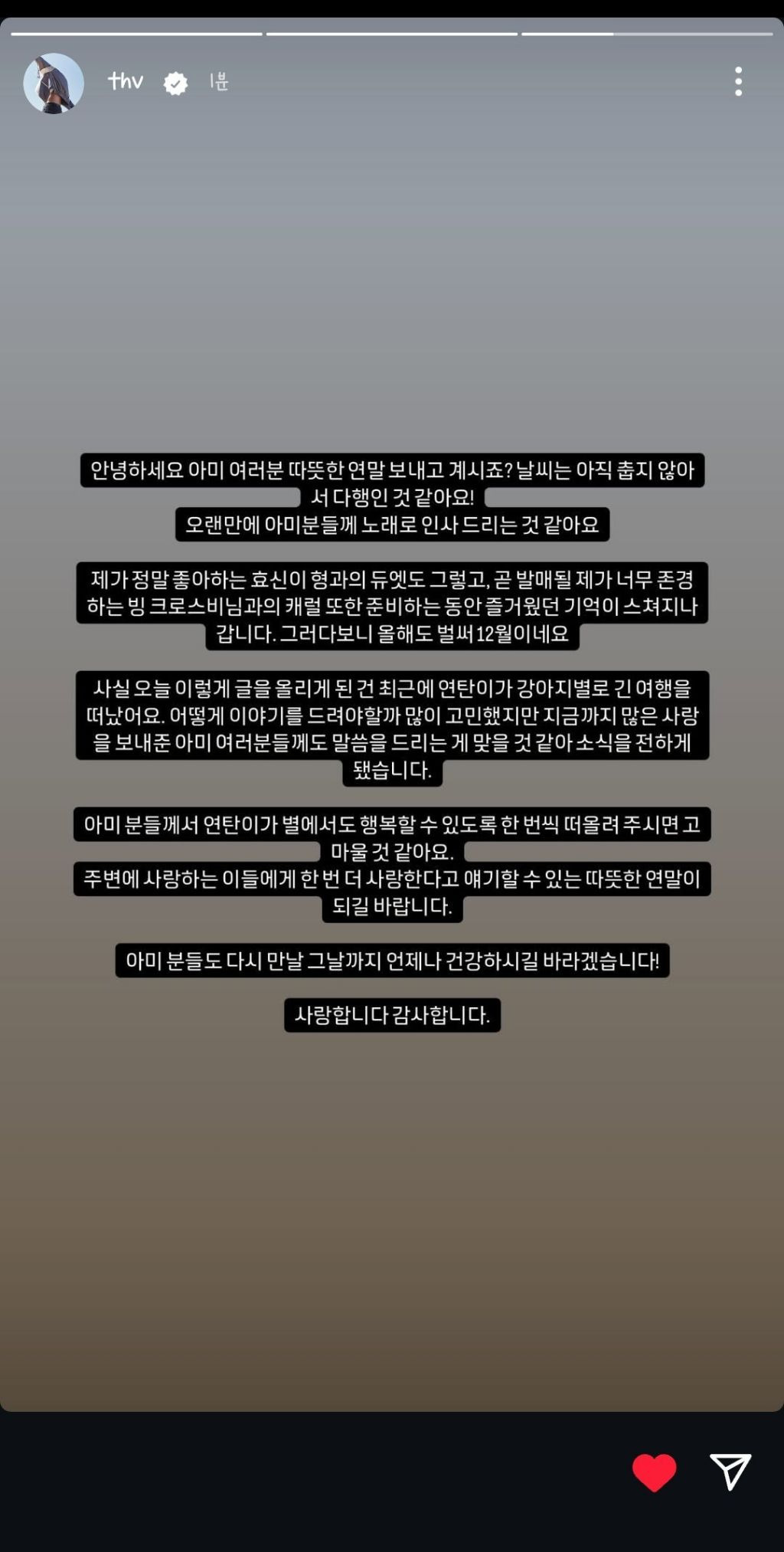 강아지별로 떠난 방탄 뷔 반려견 연탄이