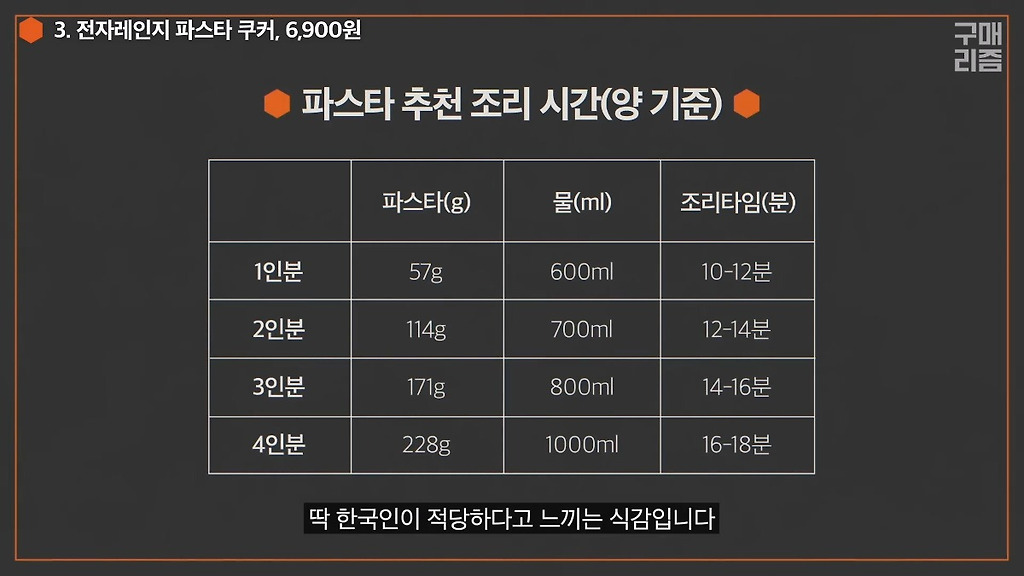 파스타 추천 조리 시간 & 양