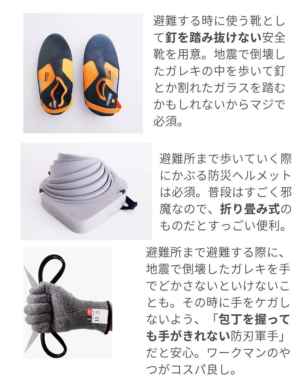 -안전화: 지진으로 물건이 부서져 바닥이 위험하므로 매우 유용