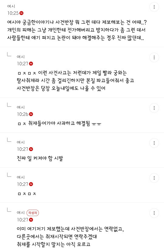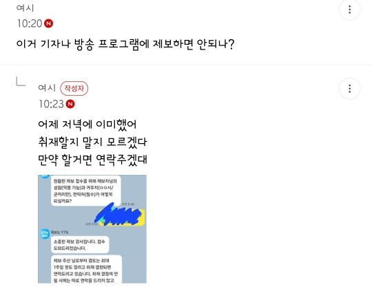 제목은 피해자가 뉴스제보한 댓글내용보고 썼어