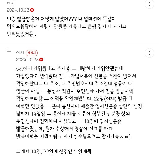 혹시 개인정보유출로 걱정되는 덬 있으면 정부24앱에서 주민등록증발급상황조회 가능함