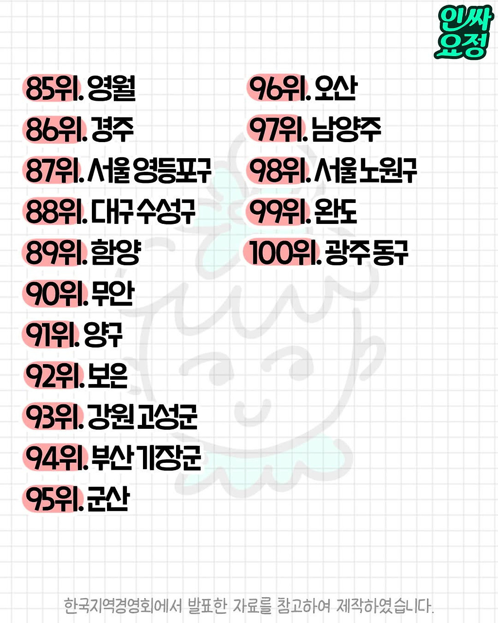 +) 이번 발표는 기초 시군구(228개)를 대상으로 인구, 경제·고용, 교육, 건강·의료, 안전 등 5개 영역과 관련한 객관적이고 정량적인 지표를 토대로 평가한 결과다.